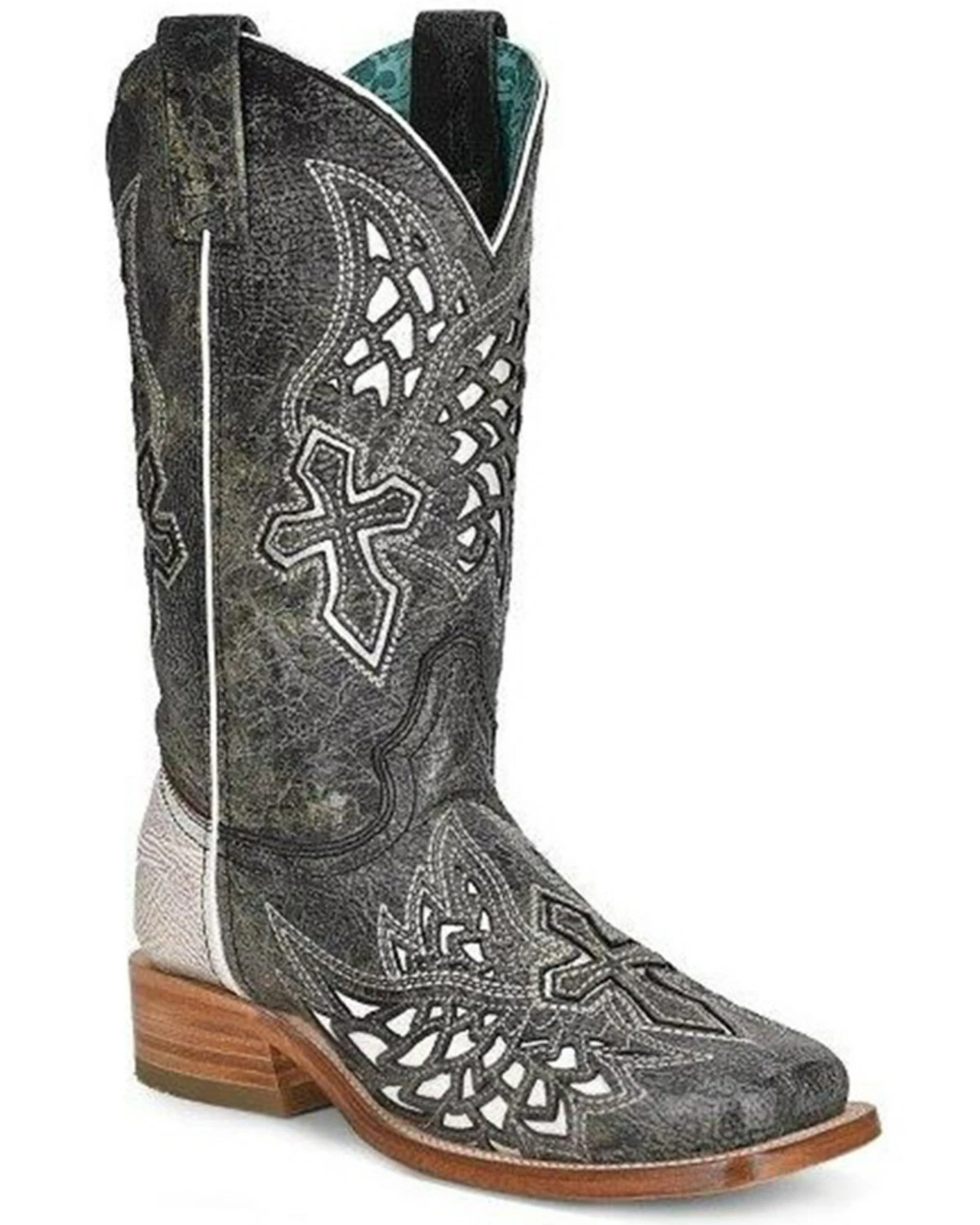 Be the first to review “Corral Women’s Black Inlay Western Boots – Broad Square Toe Black/white” Cancel reply
