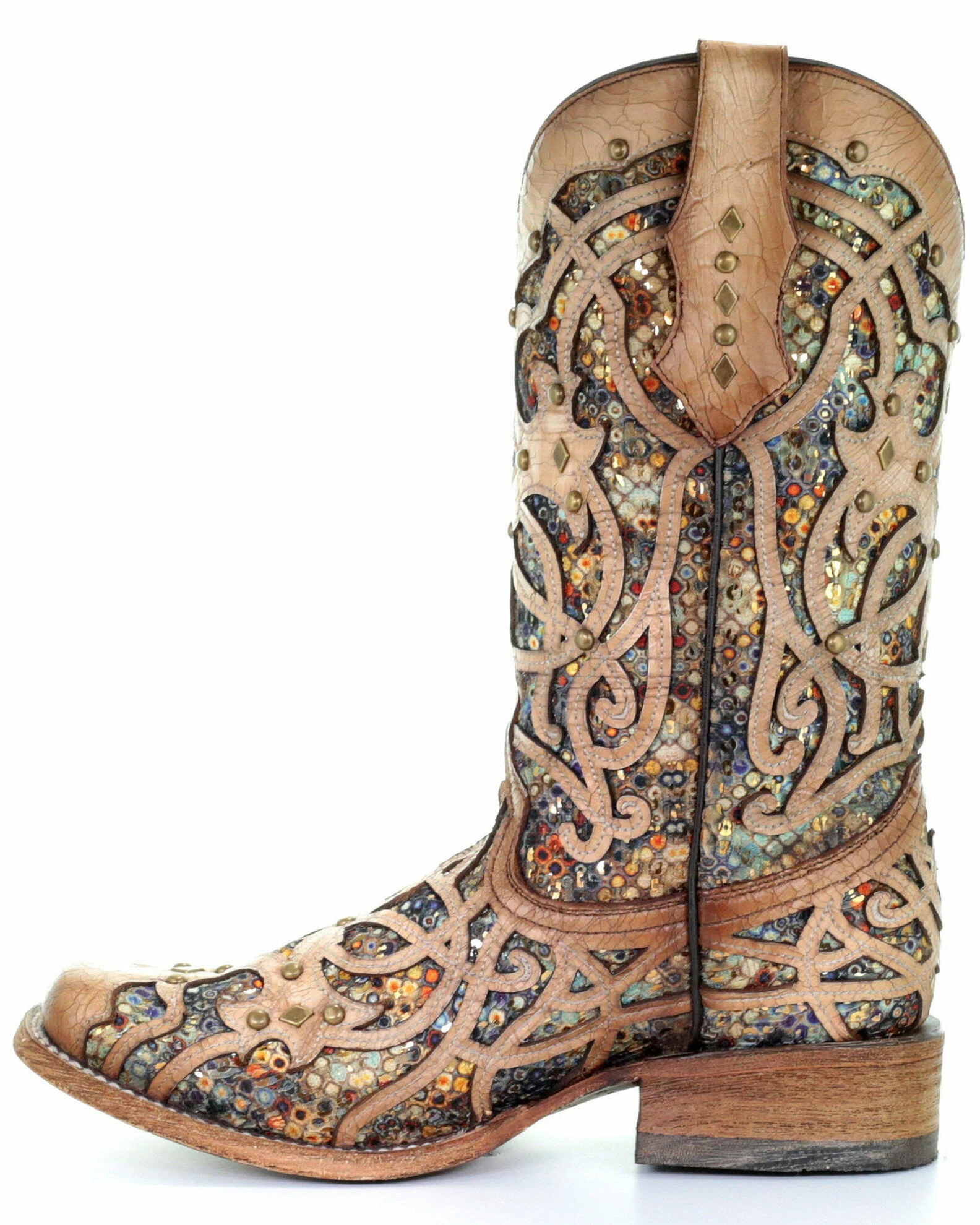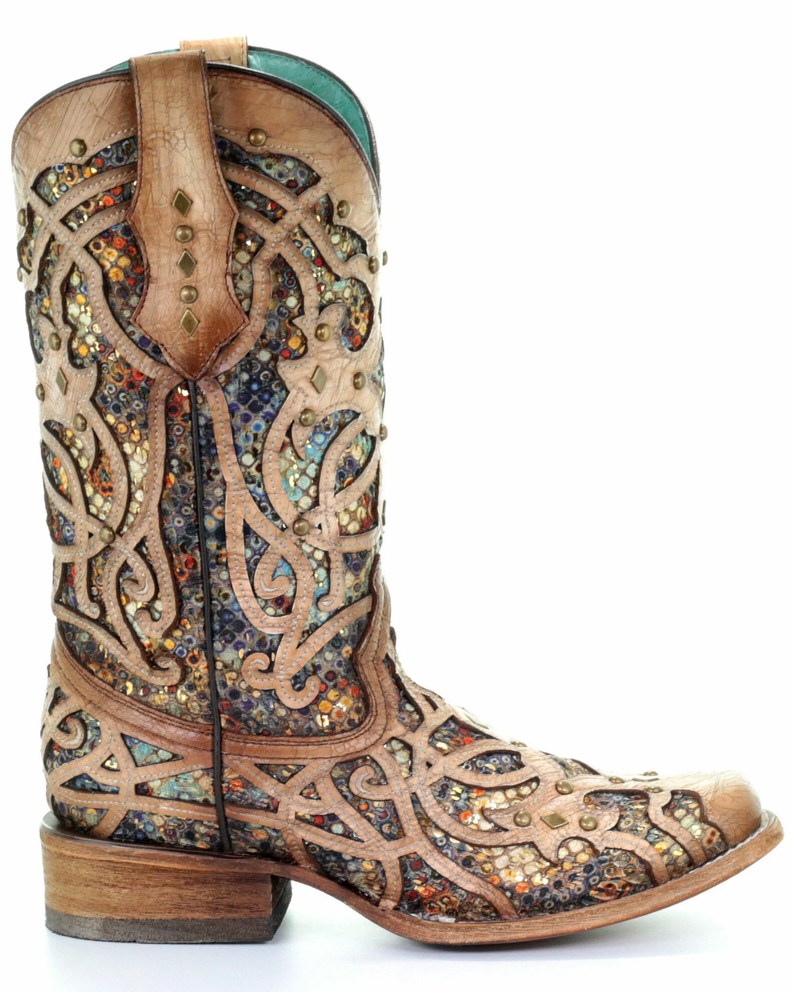 Corral Women’s Bone Inlay Western Boots – Square Toe