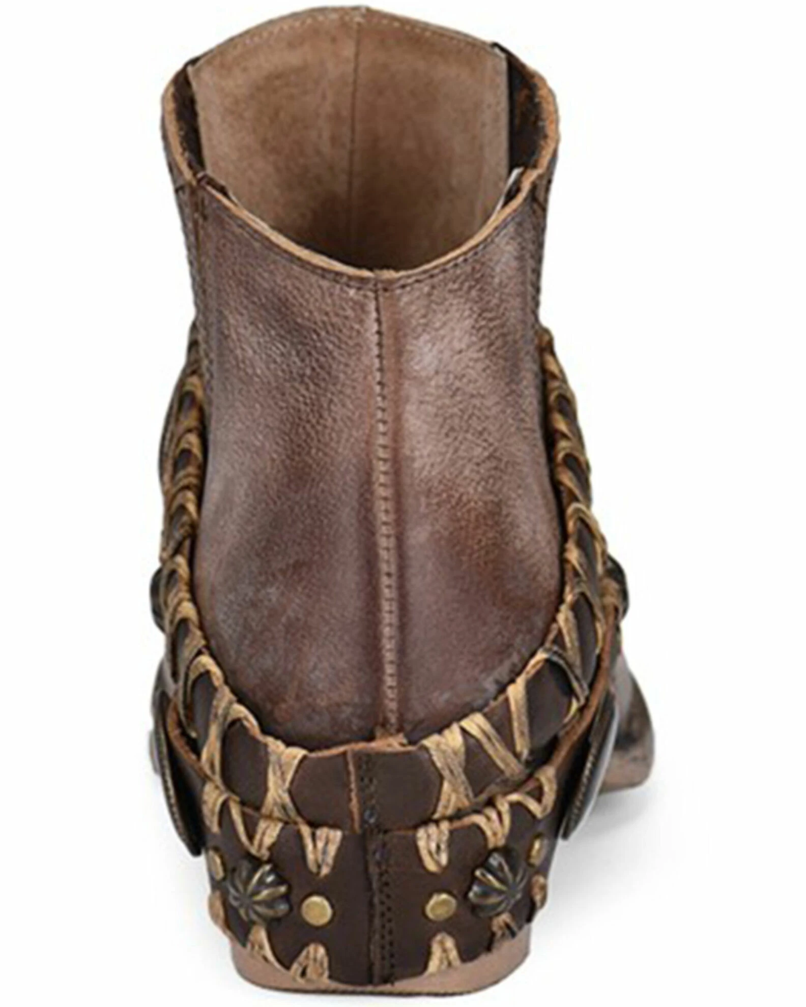 Corral Women’s Brown Harness Fashion Booties – Round Toe Dark Brown