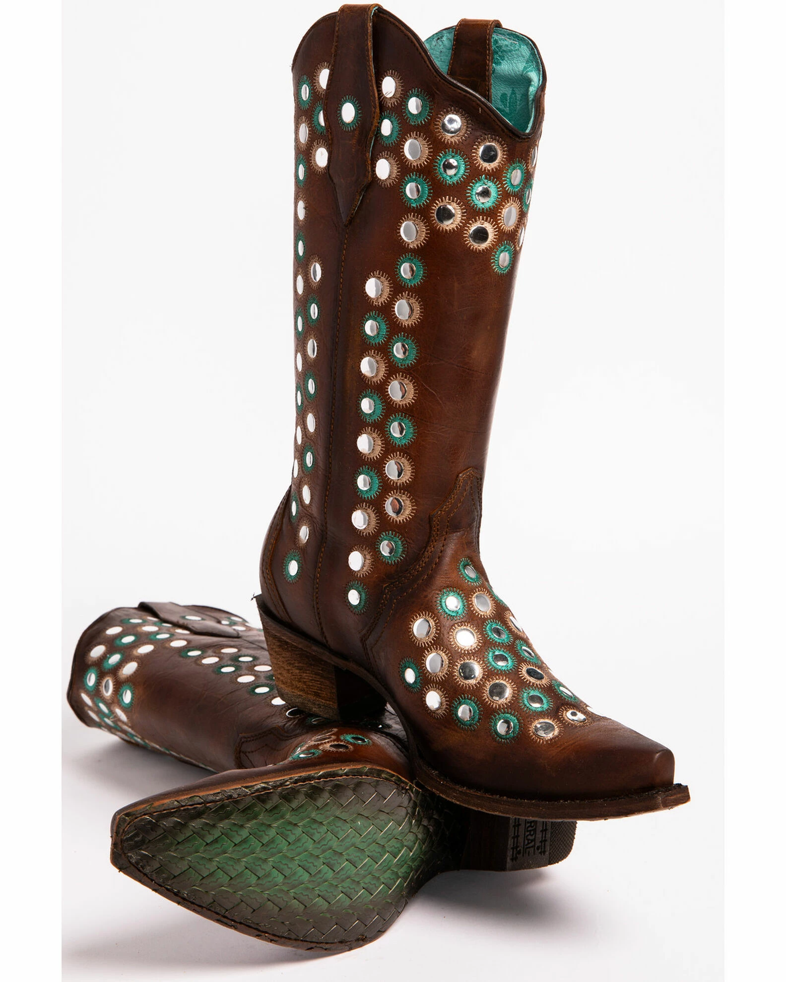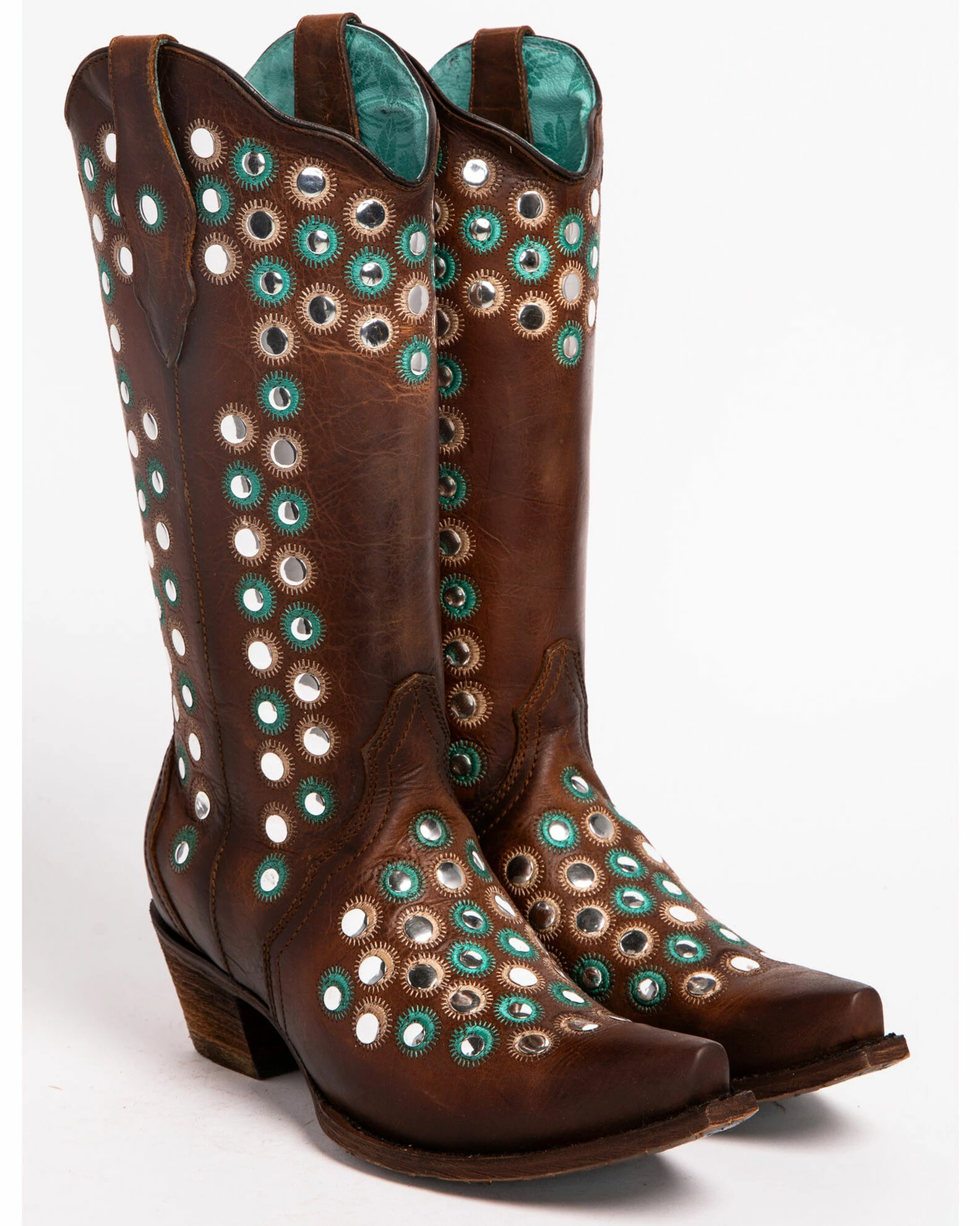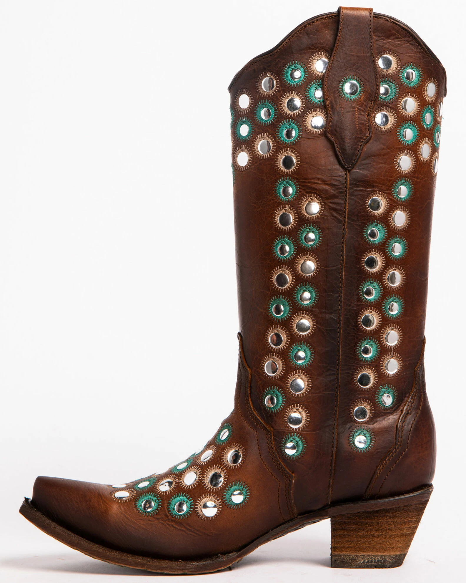 For cutting edge design and quality craftsmanship, cowgirls choose Corral. These gorgeous Studded Embroidered Boots are absolutely stunning. Featuring an allover studded detail with embroidery design, these boots will turns heads and garner compliments everywhere you go.