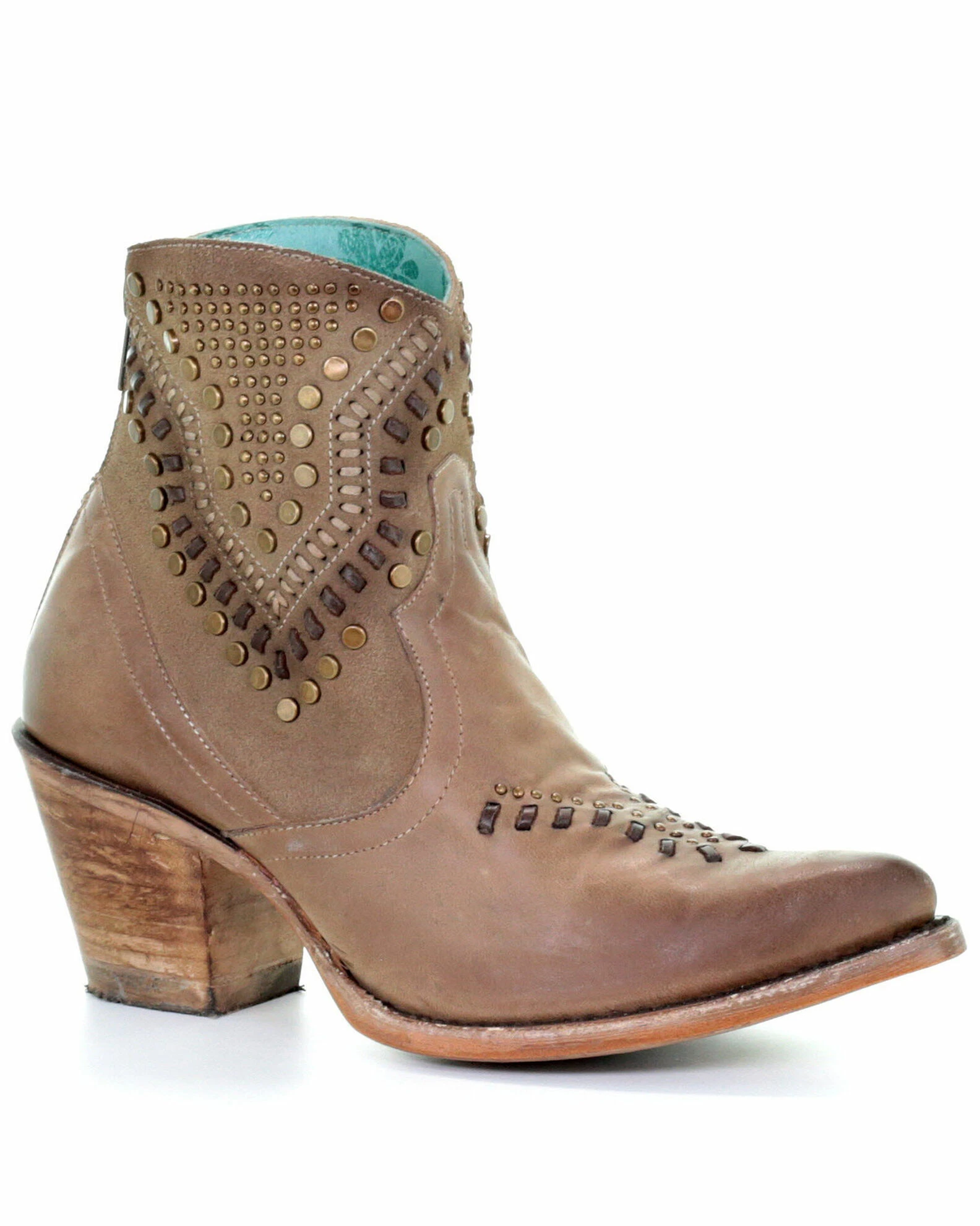 Corral Women’s Brown Studs Fashion Booties – Round Toe