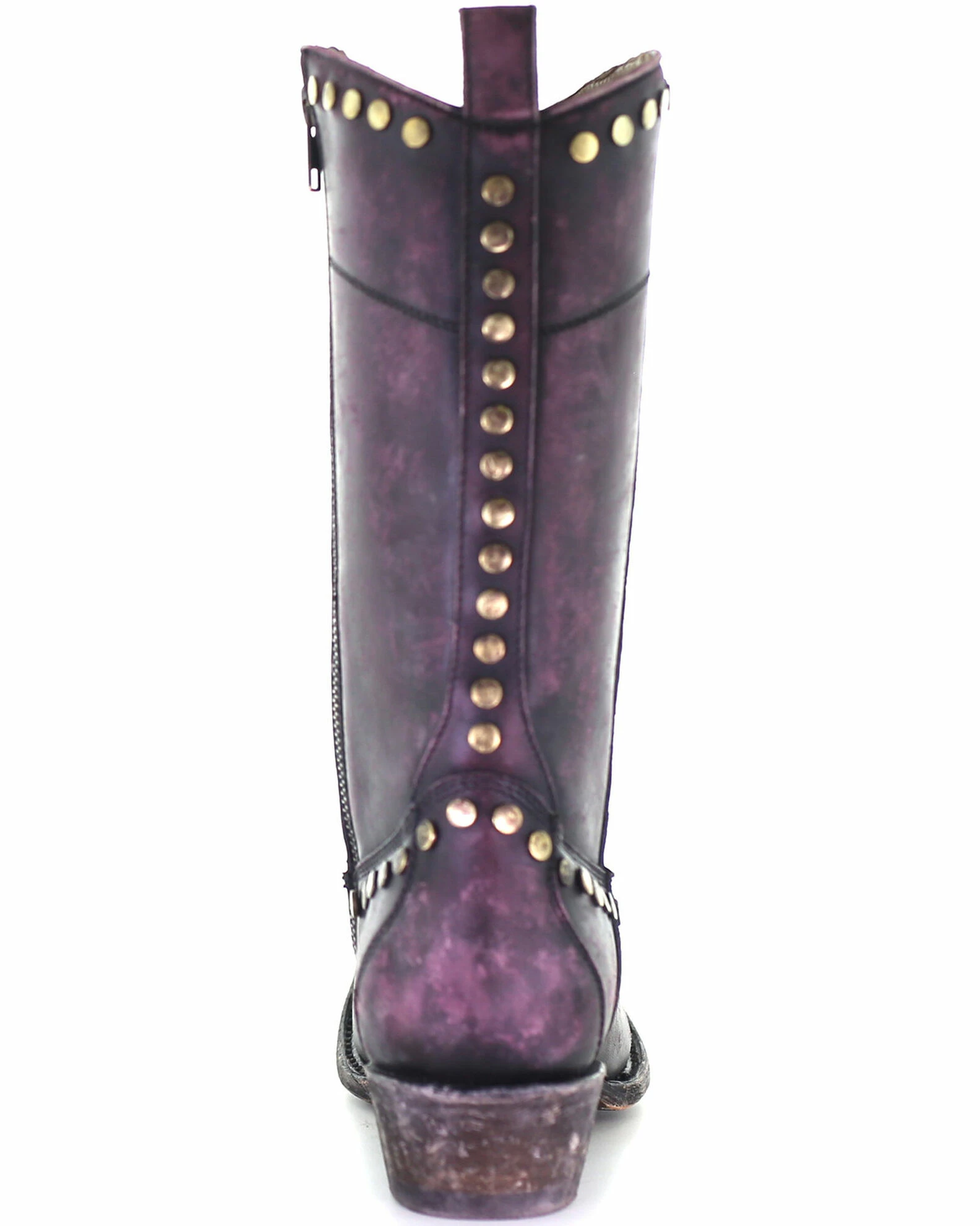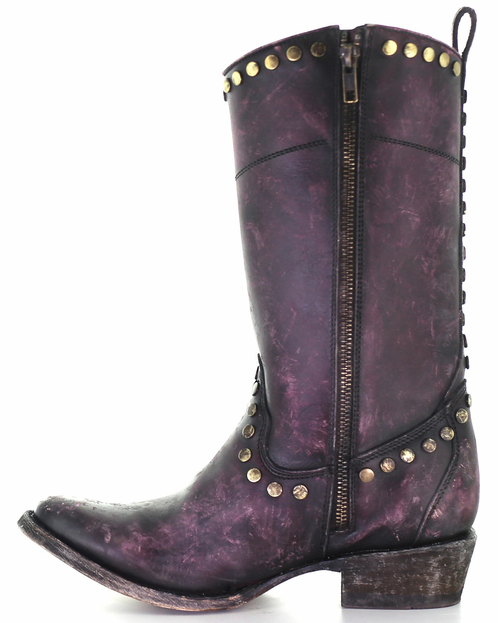 Corral Women’s Distressed Wine Zipper & Studs Western Boots – Round Toe