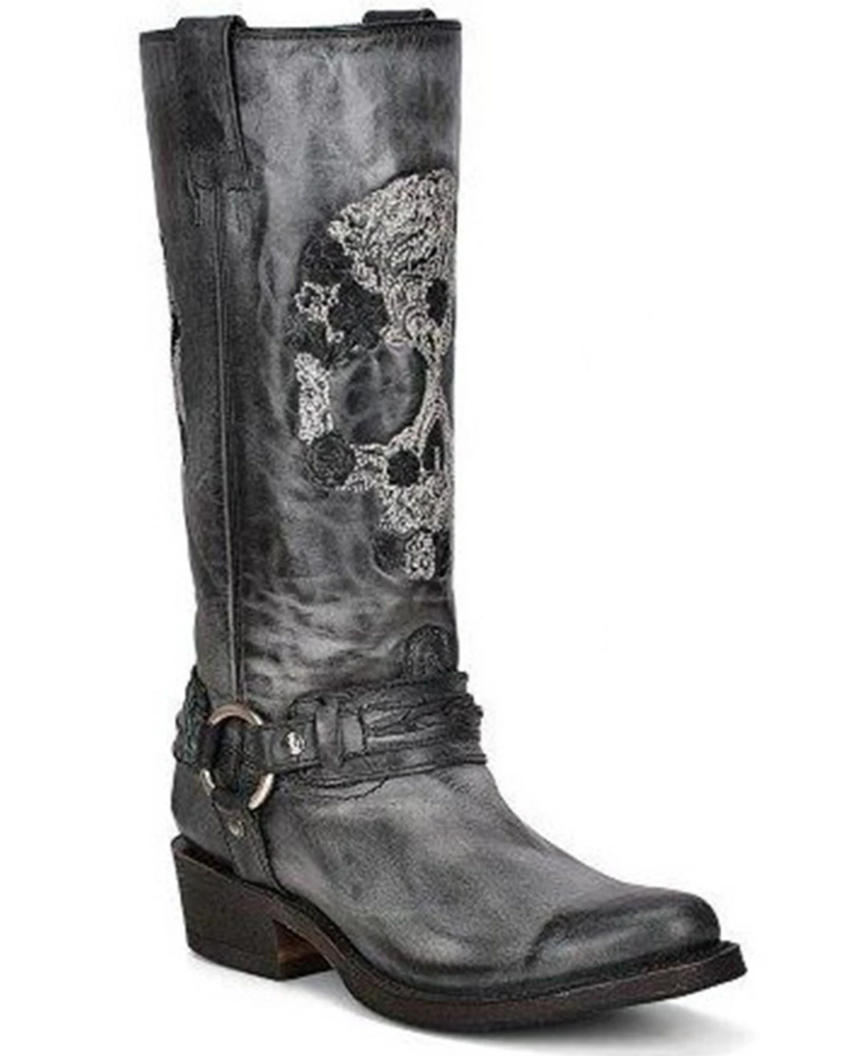 Corral Women’s Embroidered Skull & Harness Western Boots – Round Toe Black