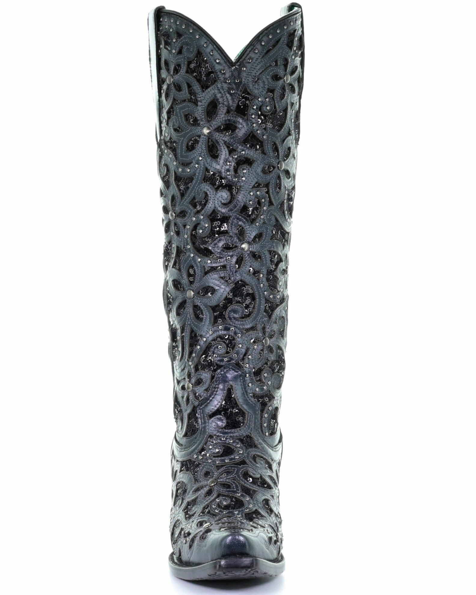 Corral Women’s Floral Inlay Western Boots – Snip Toe