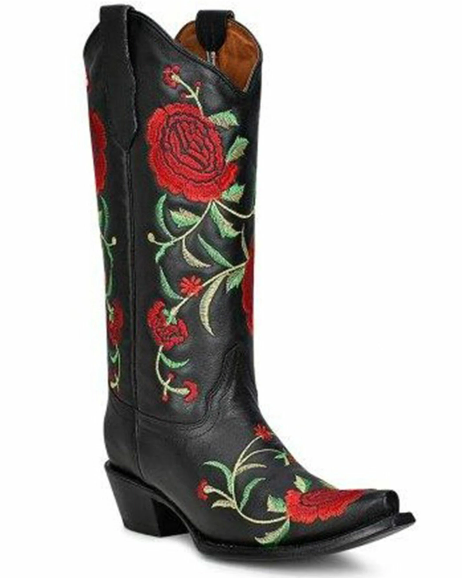Corral Women’s Flowered Embroidery Western Tall Boots – Snip Toe