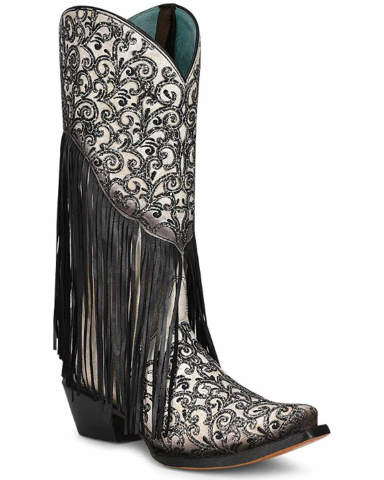 Corral Women’s Glitter Fringe Western Boots – Snip Toe
