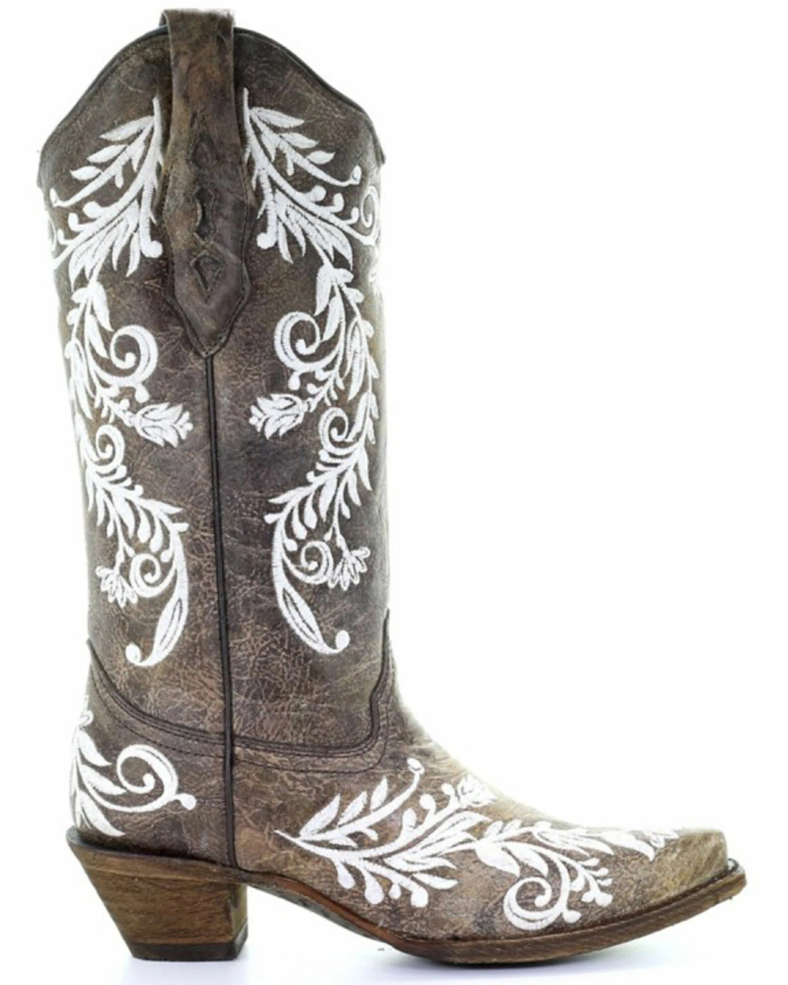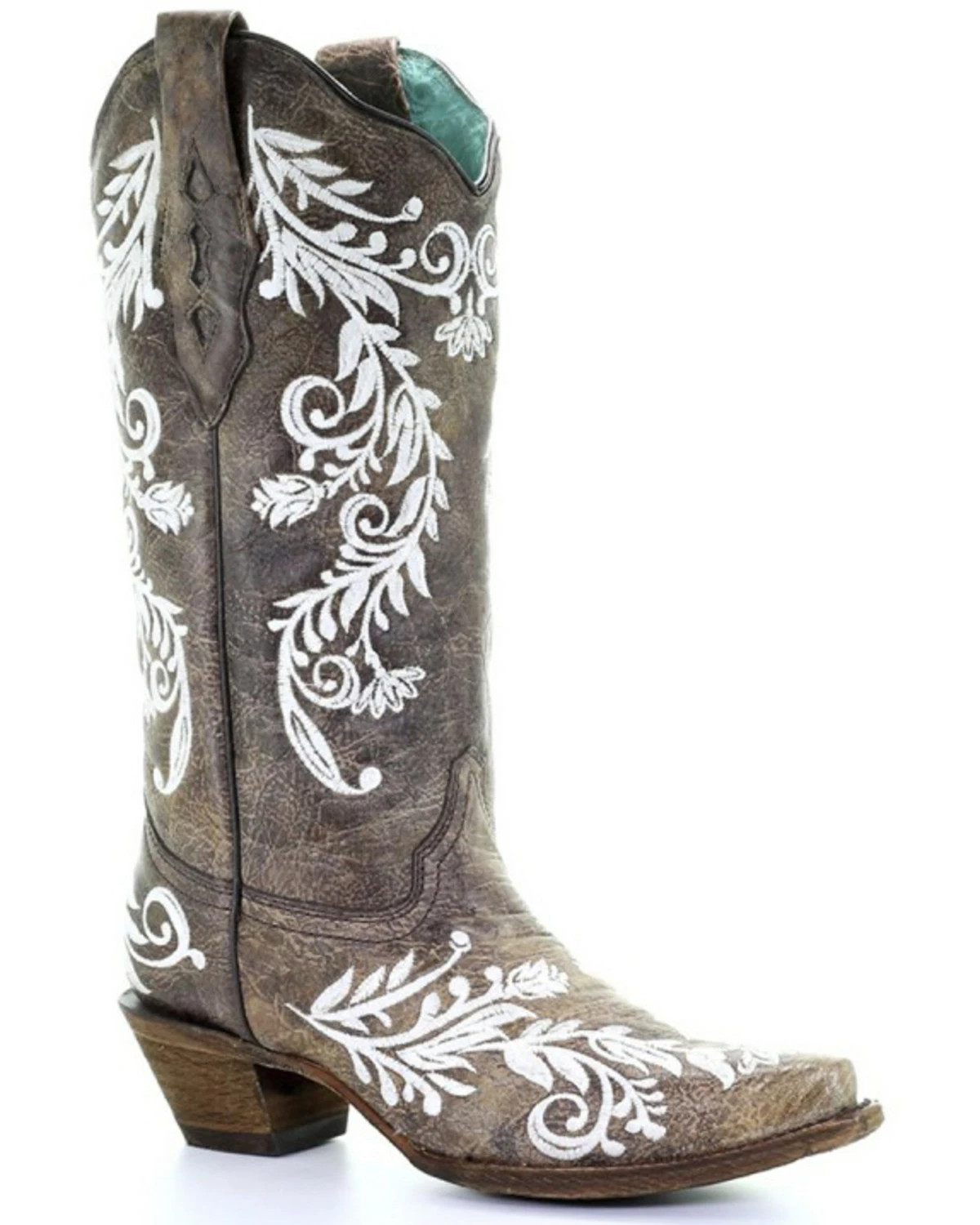 Corral Women’s Glow White Embroidered Western Boots – Snip Toe Brown
