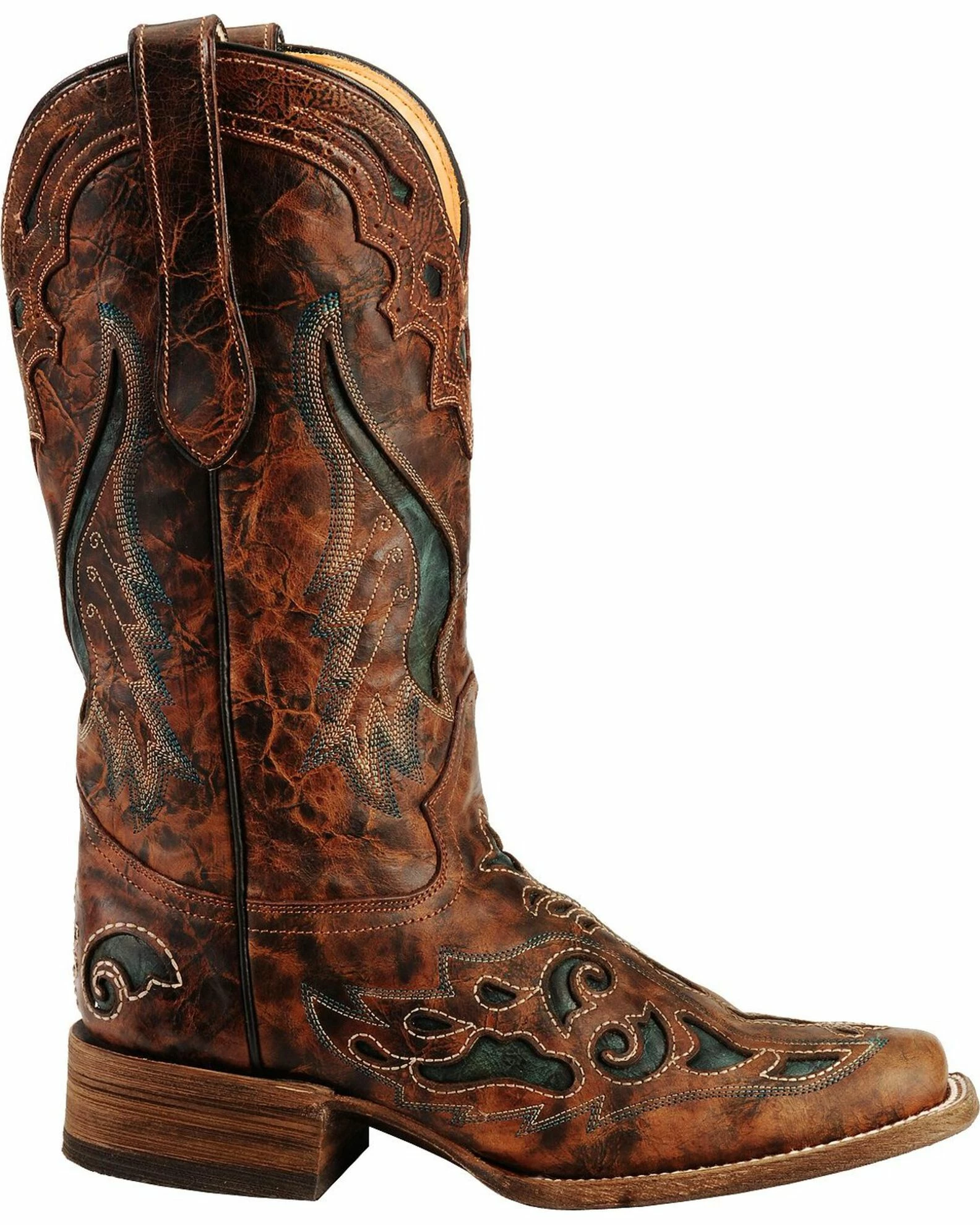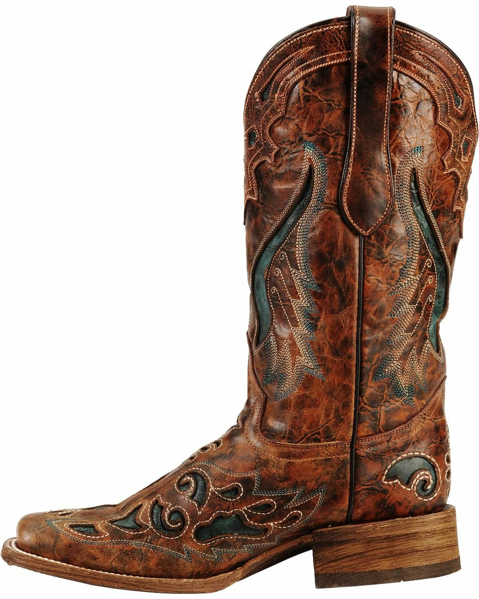 Fashionable looks and classic comfort! These Women’s Square Toe Inlay Western Boots will have you looking and feeling great. The leather lining, cushioned insole, and leather and rubber outsole provides a comfortable atmosphere for your feet. The distressed leather, leather inlays, low roper heel, and square toe give these boots a great western look that will go great with multiple outfits for various occasions. Pair with your favorite denim and hit the town in style.