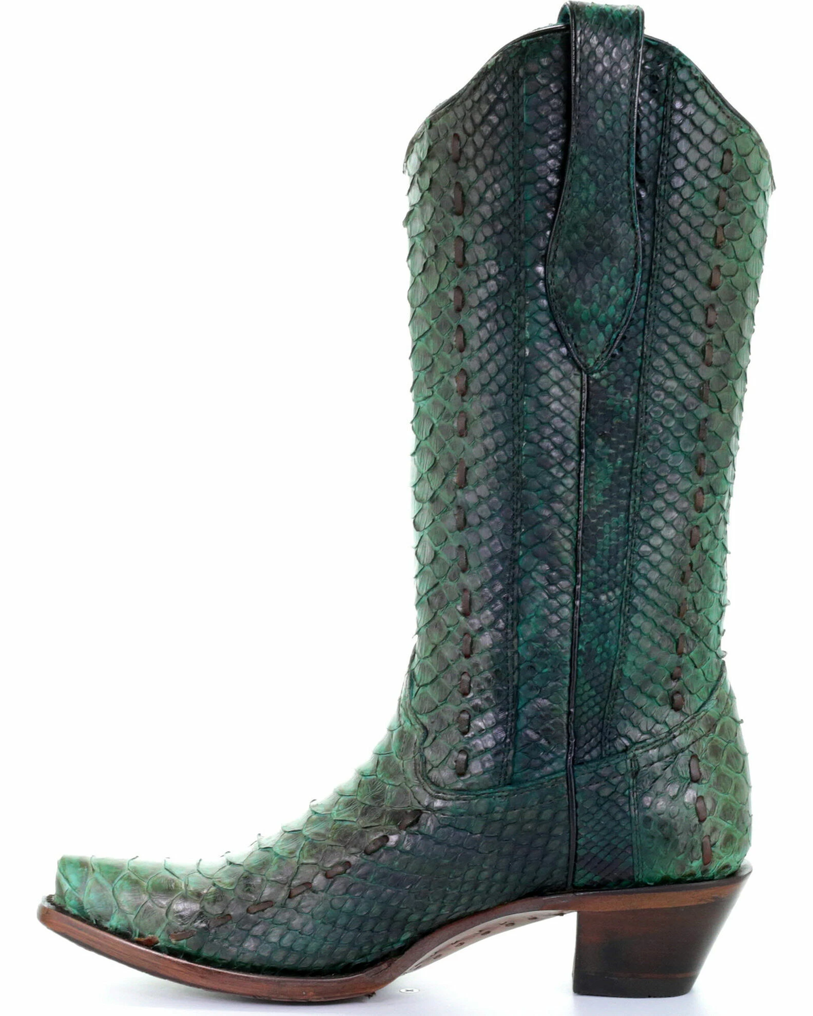 Corral Women’s Turquoise Full Python Woven Cowgirl Boots – Snip Toe