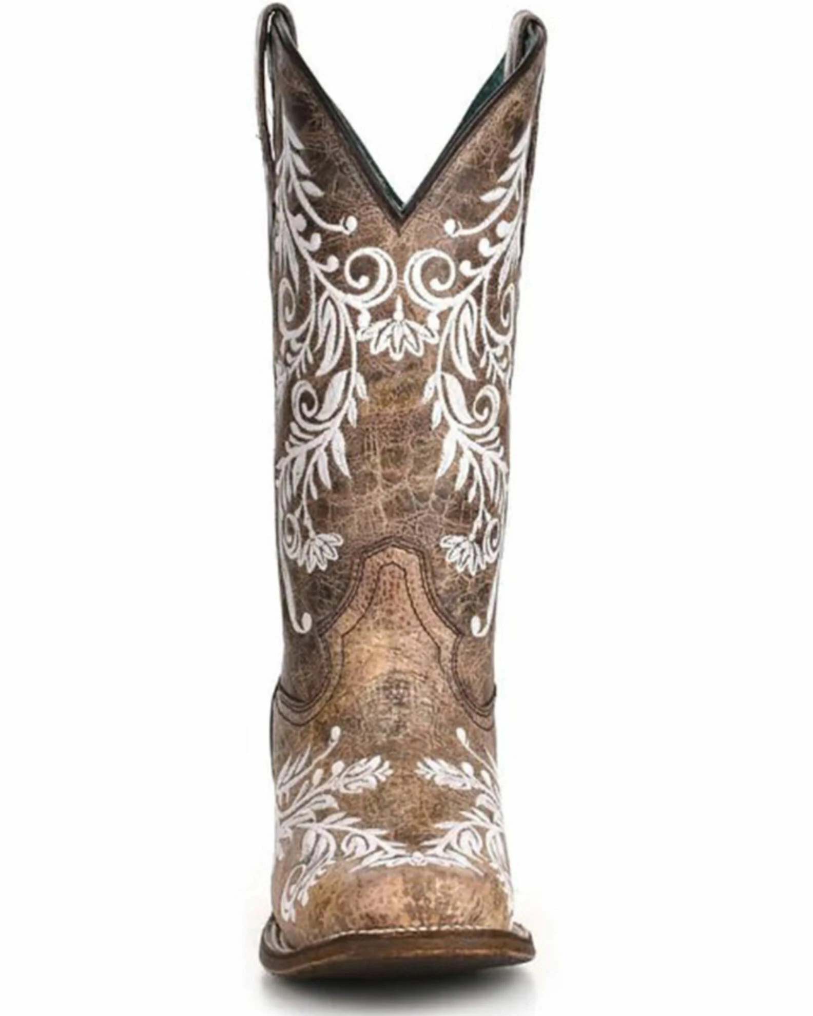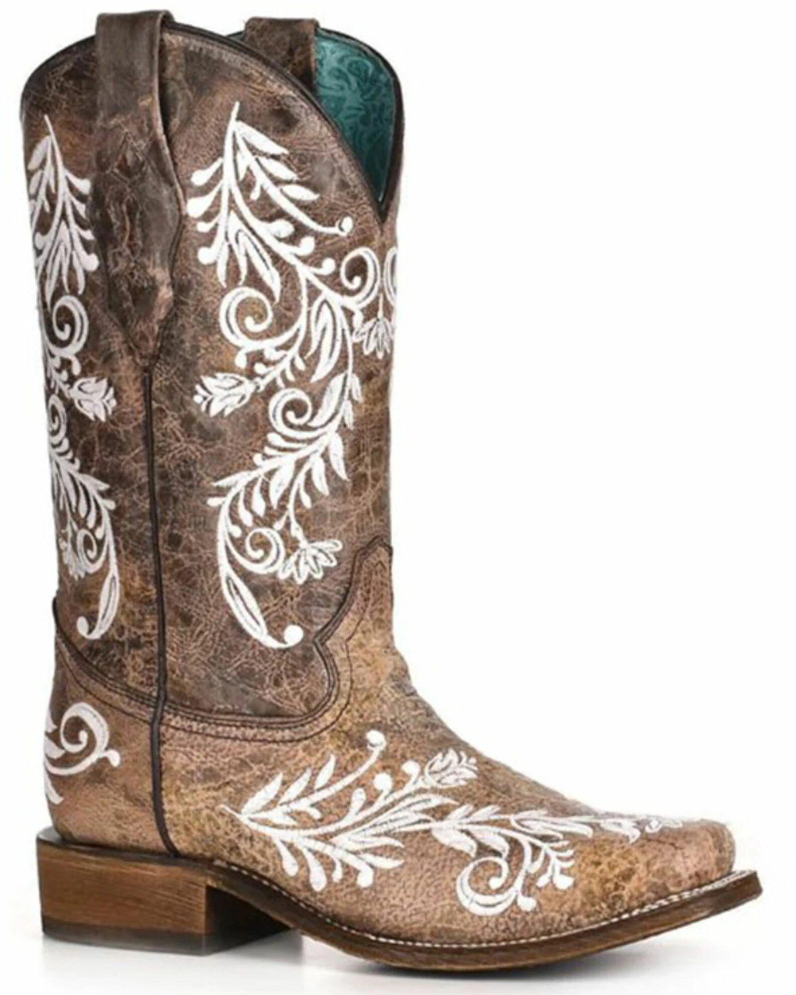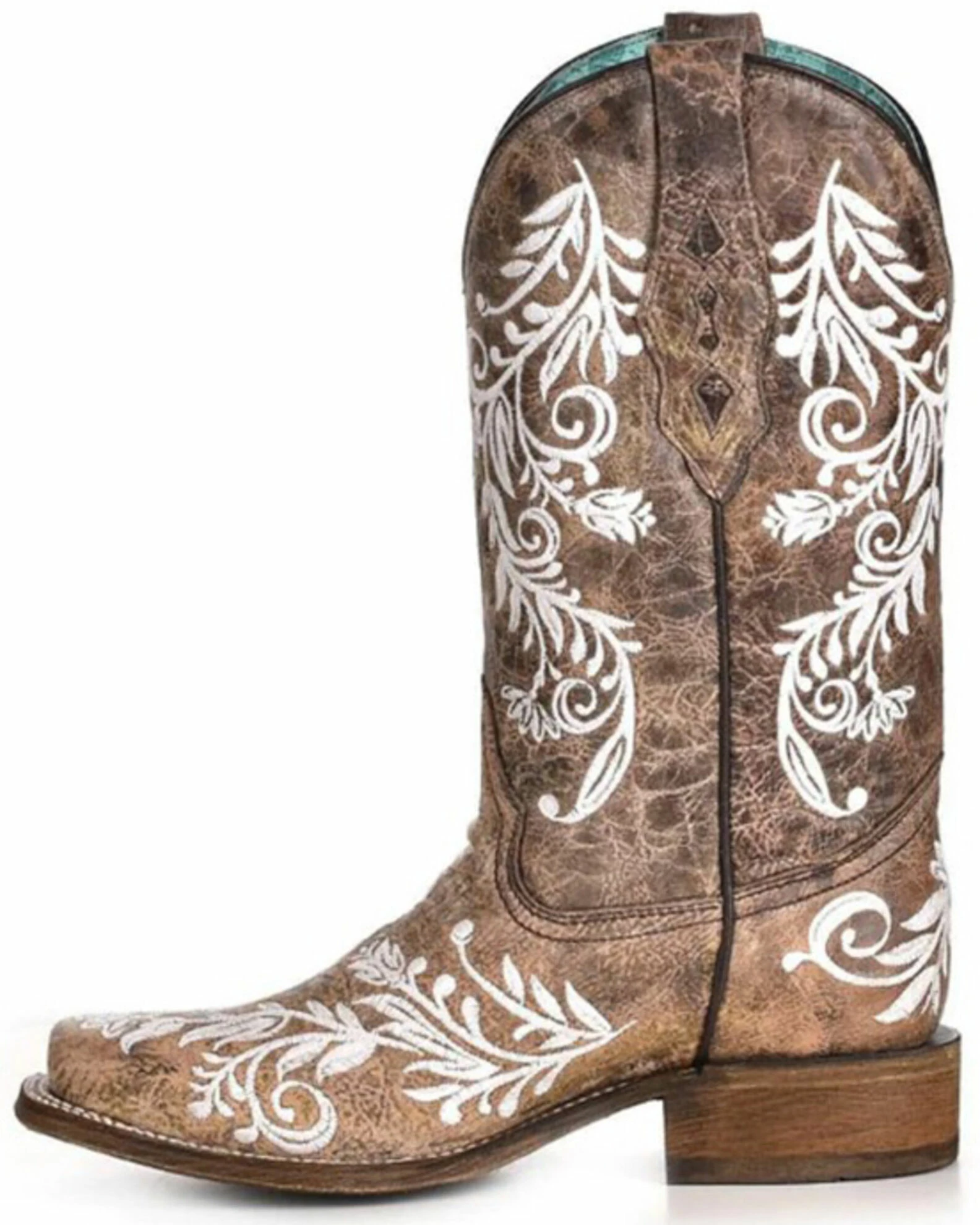 Corral Women’s White Embroidery Glow Western Boots – Square Toe