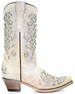 Corral Women’s White Overlay Western Boots – Square Toe Cream/black